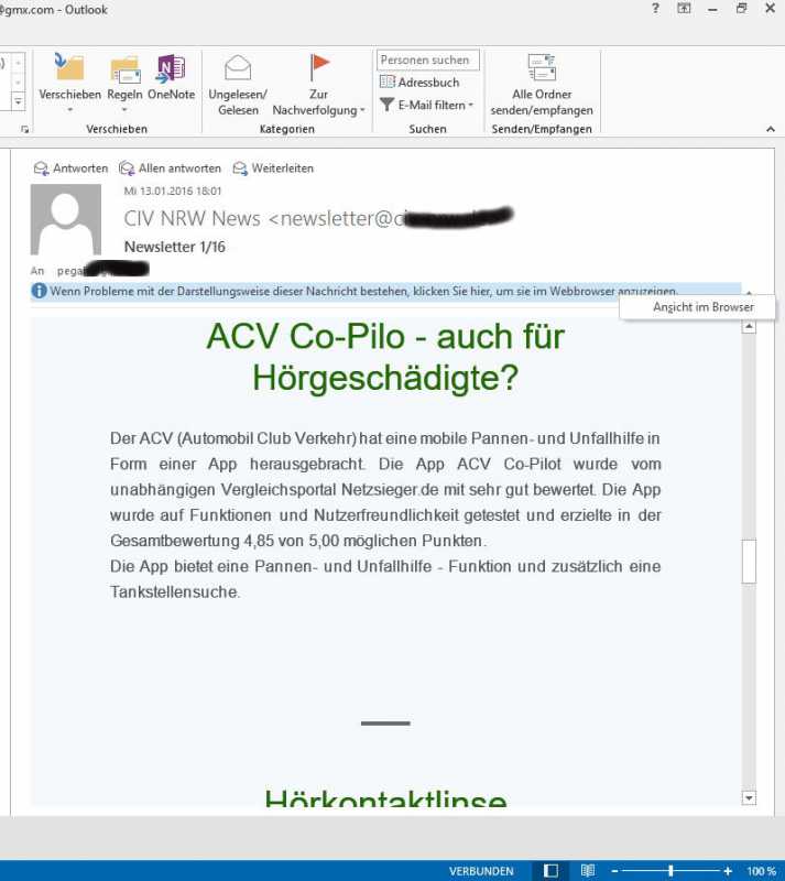 Kann es sein, dass Outlook die Nachricht als "Phishing" einstuft und deshalb die Links deaktiviert?