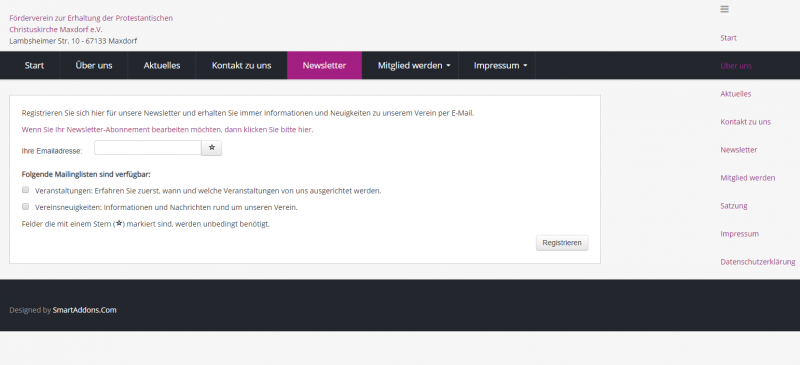 mit_fehler.png zeigt das Grundproblem auf der Newsletter-Anmeldungsseite