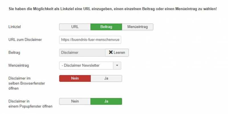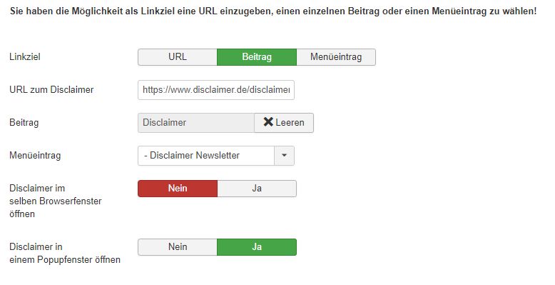 Wenn ich meine eigene Disclaimer-Beitrags-URL herauslösche, platziert sich wieder dieser Link? www.disclaimer.de/disclaimer.htm