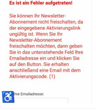 Hallo Karl, hier ein Screenshot mit der Fehlermeldung nach Aufruf des Links in der Bestätigungsmail