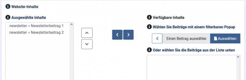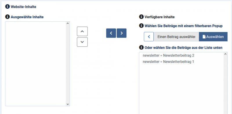 Wenn du den Newsletter dann erstellst, kannst du in Schritt 1 weiter unten die Beiträge sehen und auswählen.