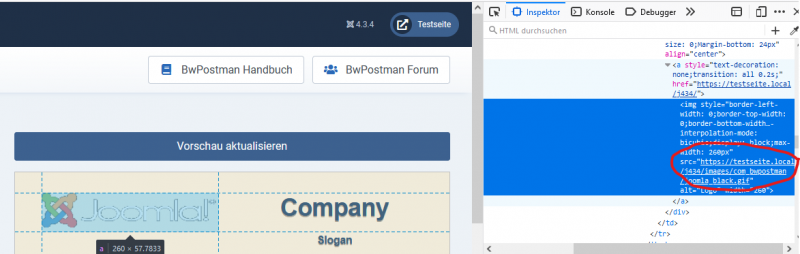 Wenn du in der Templatevorschau das Logo mit den Entwicklertools des Browsers untersuchst, dann siehst du die URL des Logos – bitte prüfe, ob die richtig ist.