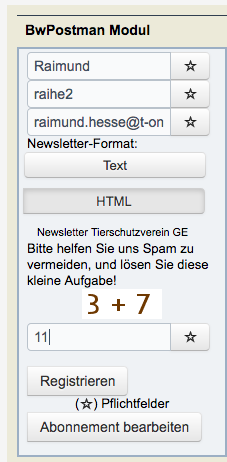 BESTENS!!! Vor allem, dass die Captcha-Rechenaufgabe funktioniert. Habe bewusst ein falsches Ergebnis eingestellt, eine entsprechende Fehlermeldung folgte.